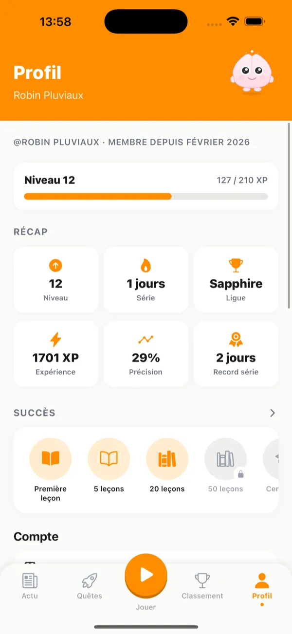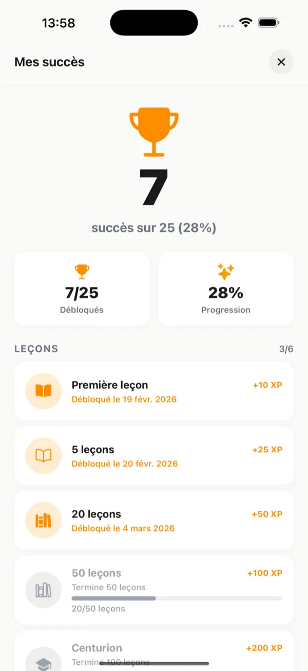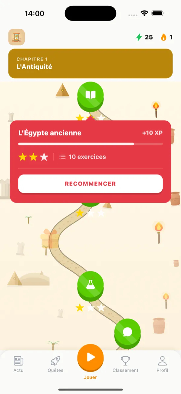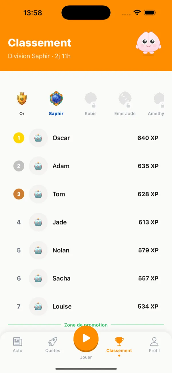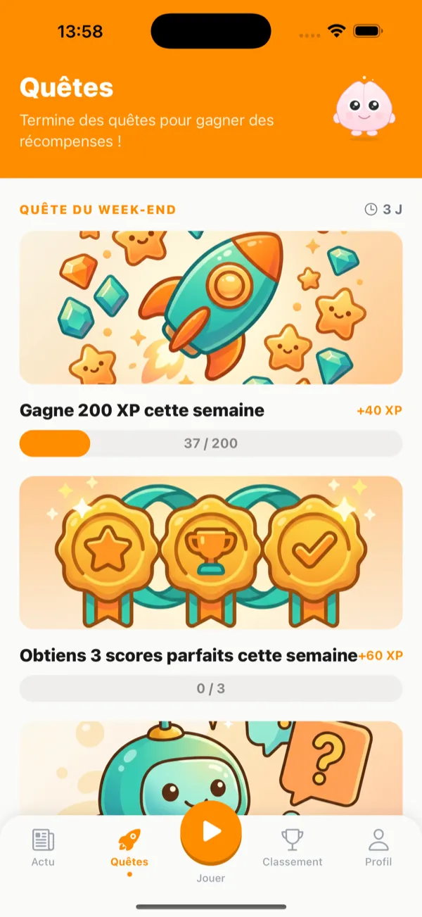 Enchaîne les bonnes réponses pour déclencher des bonus XP et grimper plus vite.