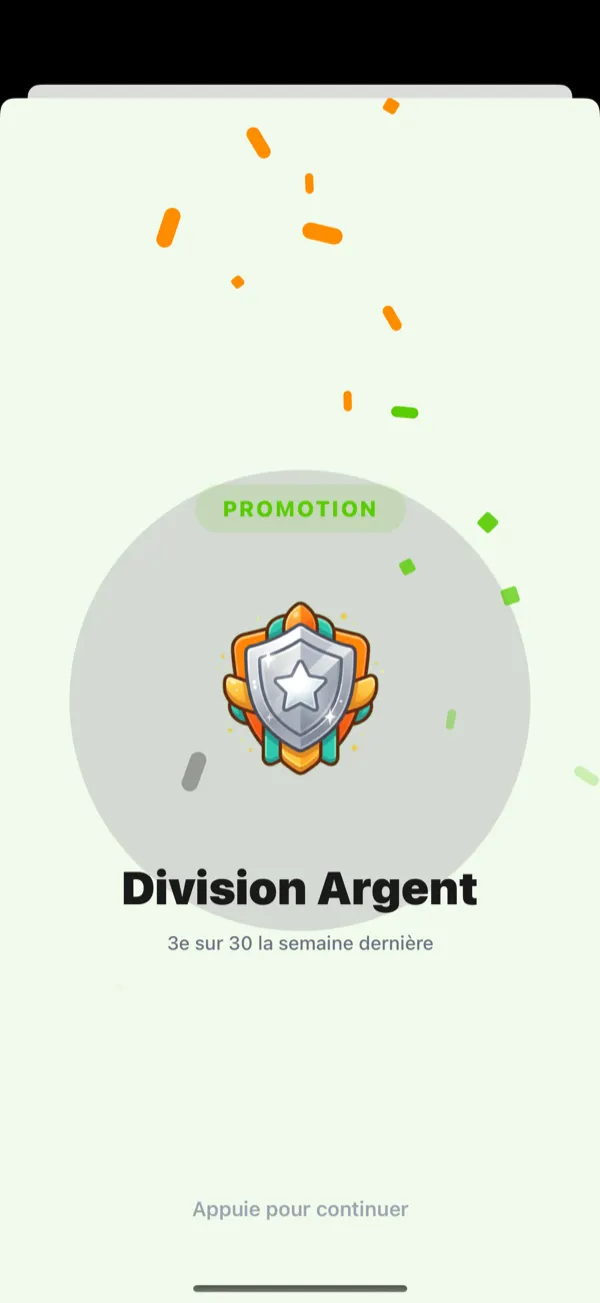10 ligues de Bronze à Diamant avec des classements hebdomadaires pour te mesurer aux autres.
