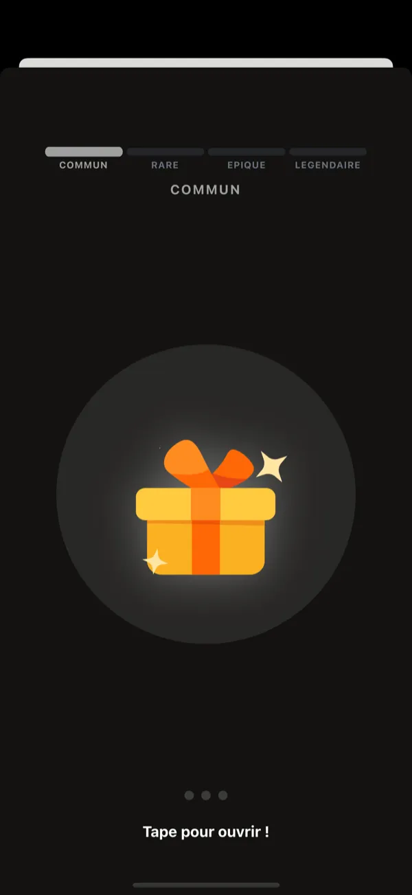 4 raretés de coffres à débloquer : commun, rare, épique et légendaire. Chaque coffre contient des bonus XP.