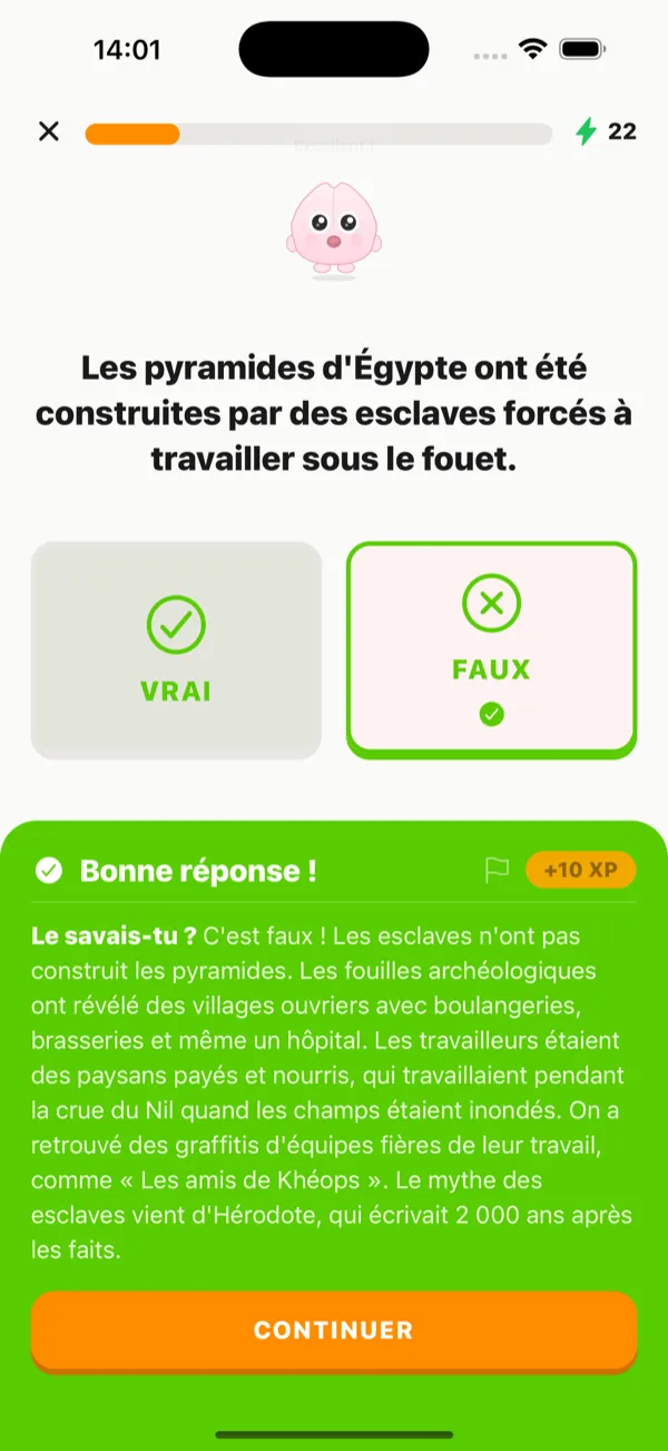 Je pensais que c'était un énième quiz bateau. En fait non, les questions sont vraiment bien faites et tu apprends pour de vrai.
